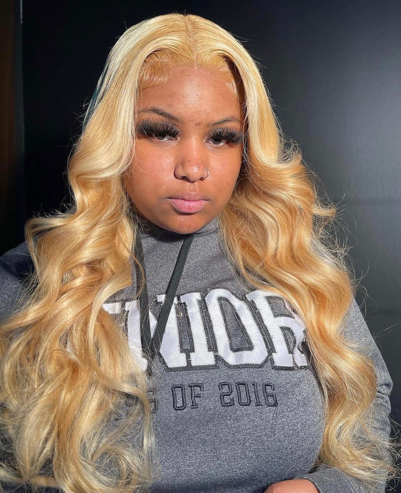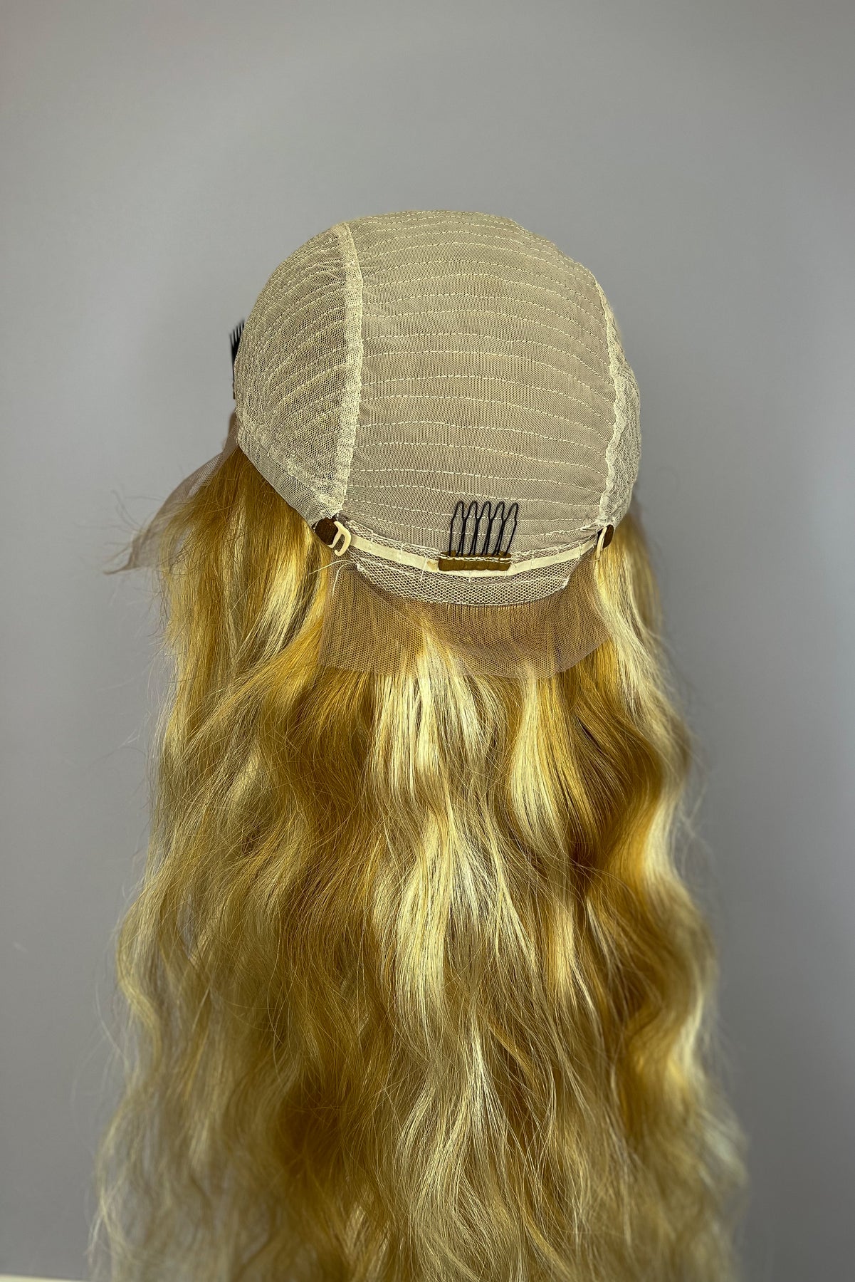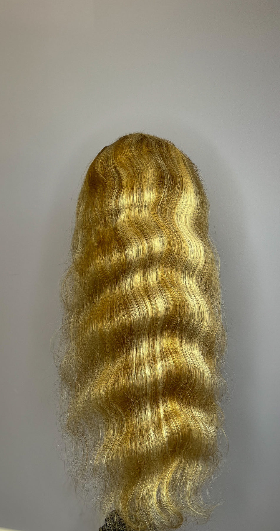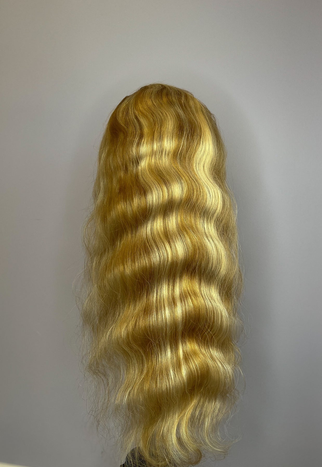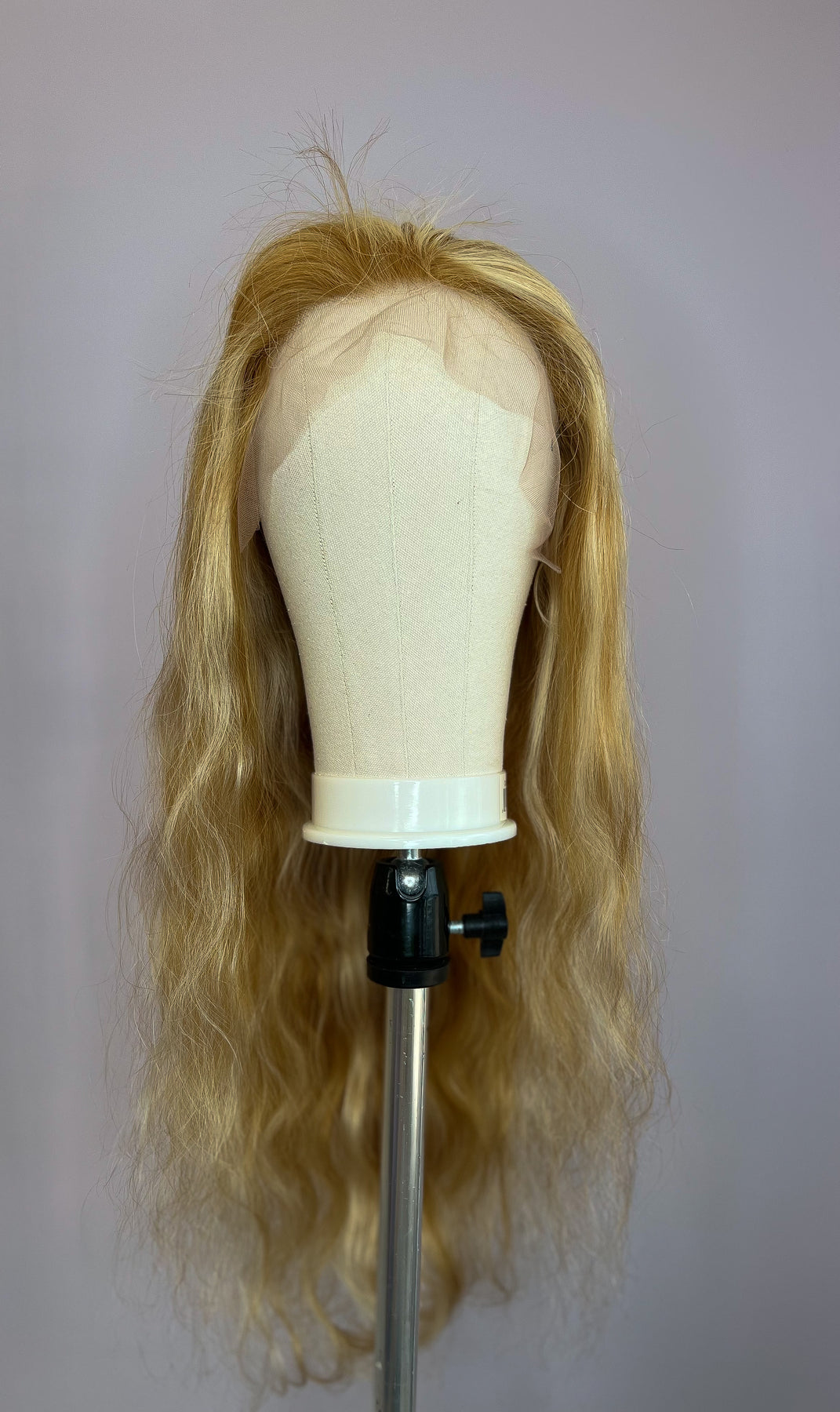 Custom colored 613 highlight 13x4 transparent frontal unit with 2 bands and clips included, natural pre-plucked and single knotted lace perfect for a glueless option.